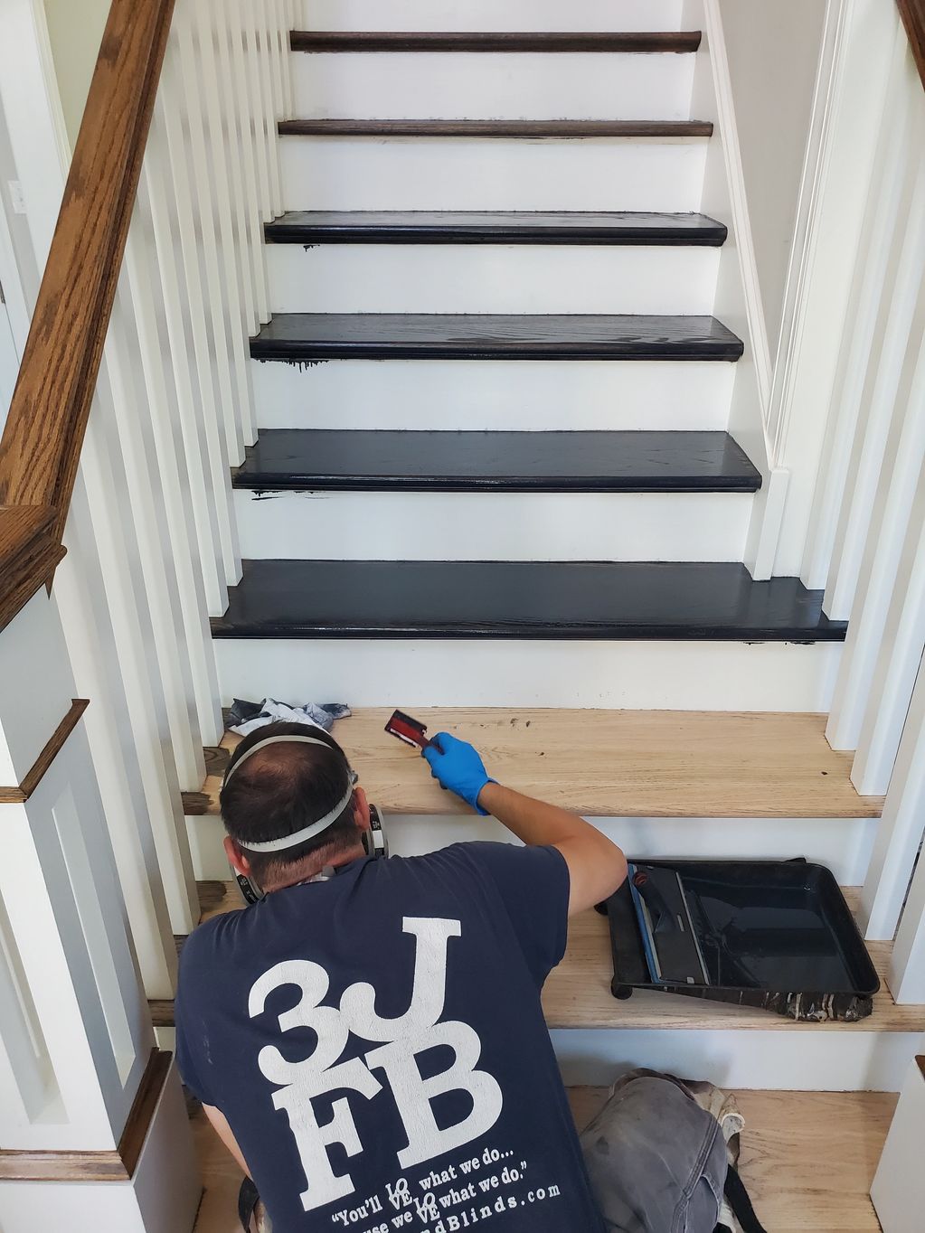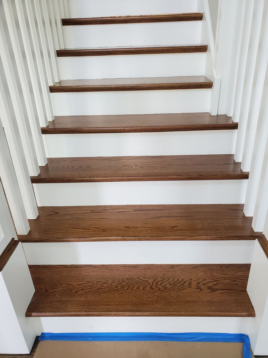 These stained oak steps did not match the dark stain that we applied on the first floor.