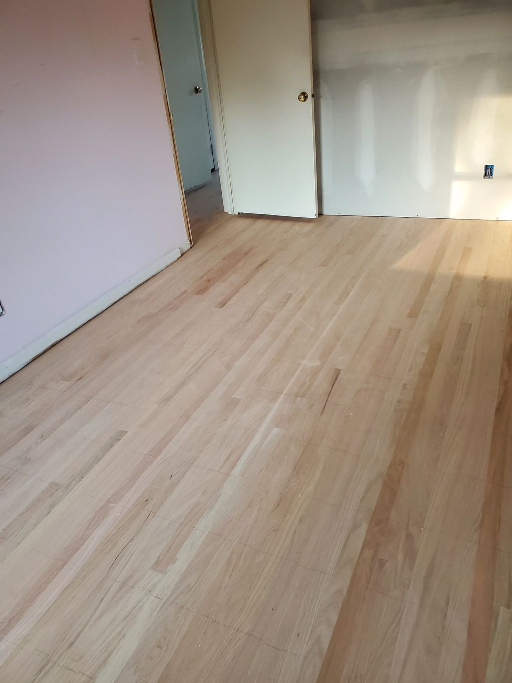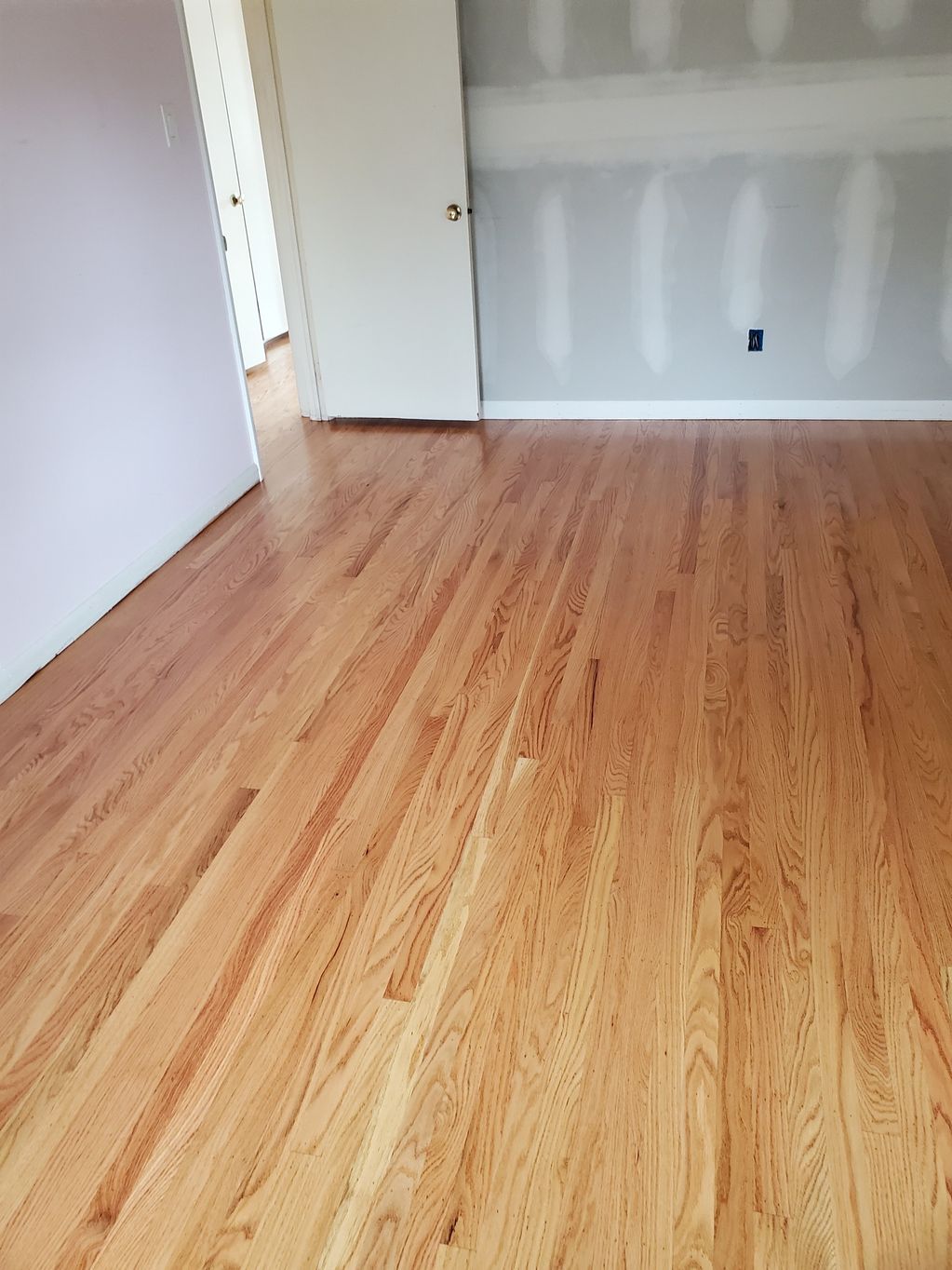 New red oak strip flooring was installed, using the traditonal top nail installation method.